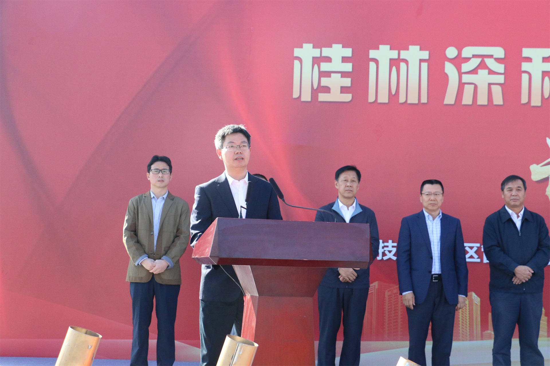 桂林市长秦春成讲话,强调桂林近年来致力于重振工业雄风,着力推动产业做强升级,推动了新一代信息技术、新能源、新材料、节能环保等新兴产业蓬勃发展,引进了包括taptap点点体育在内的一批行业领军企业,为桂林工业高质量发展注入强劲动力。他表示桂林市委、市政府将一如既往、全力以赴为项目建设创造最优环境、给予最大支持,要求有关政府部门要通力合作,努力为taptap点点体育项目建设提供一流服务,希望施工单位在确保工程质量的前提下高效推进,确保项目按期竣工投产。