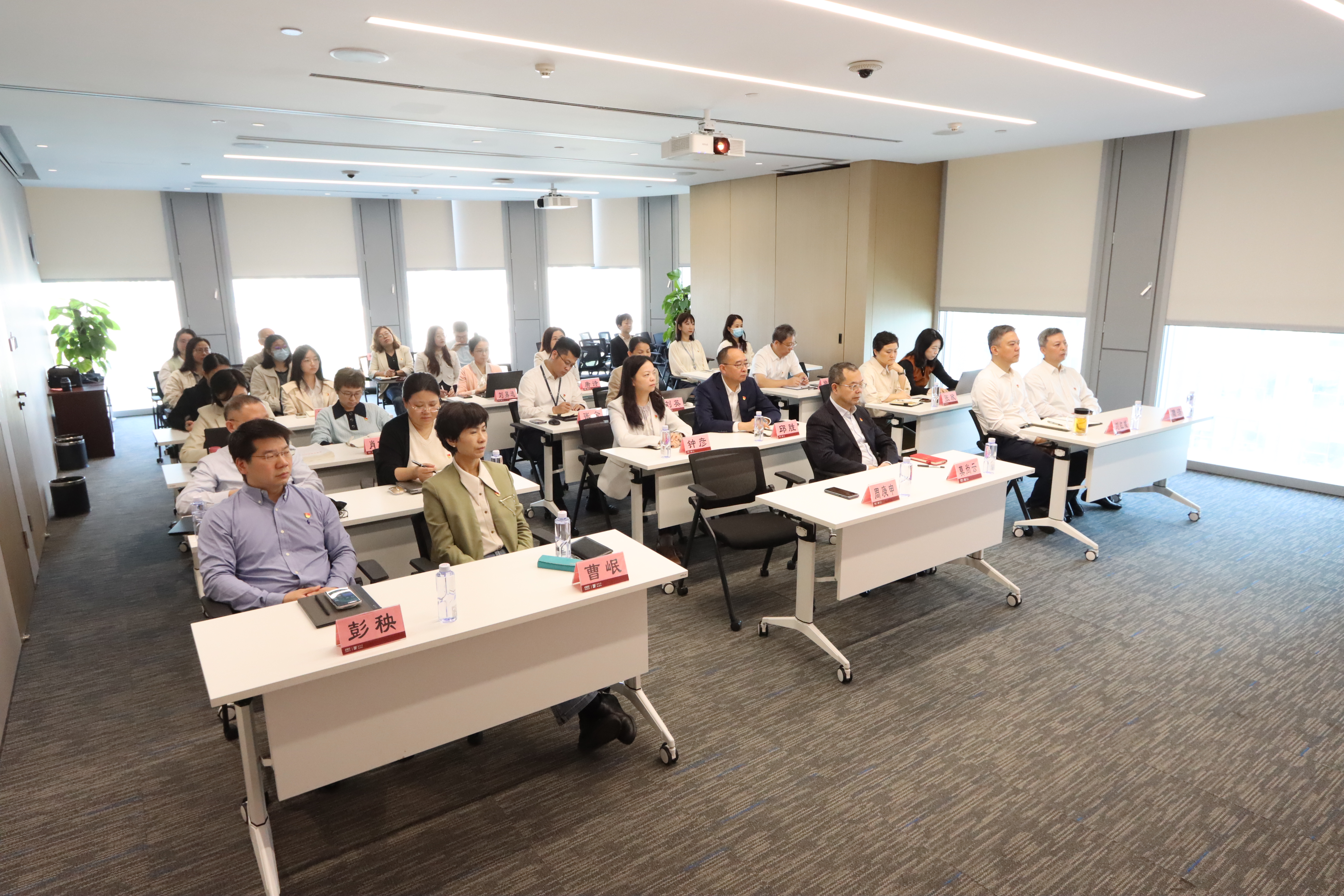 会议以现场+视频形式召开。公司党委委员、纪委委员、各党支部书记、副书记,各地区公司总经理、副总经理,党群、纪检、总办、人力等部门人员共计50余人参加学习。